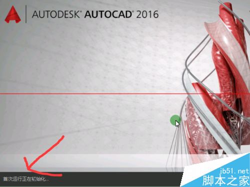 1、双击桌面的CAD2016启动图标,初次运行CAD2016软件,其会提示:首次运行正在初始化;如图1