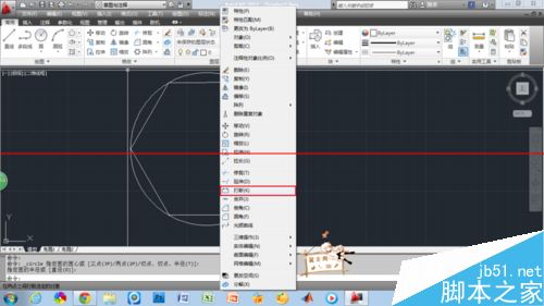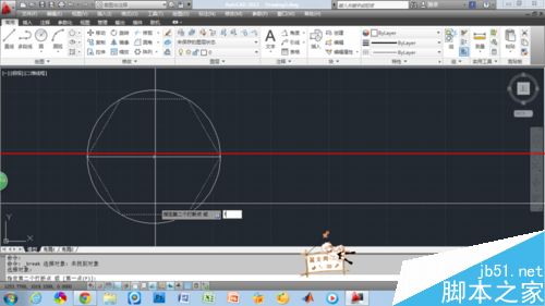 4、对圆使用打断命令时,将沿逆时针方向把第一点到第二点的部分删除。如图所示。