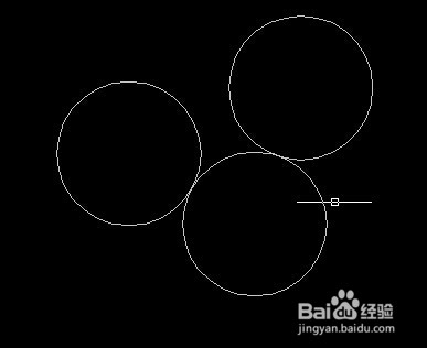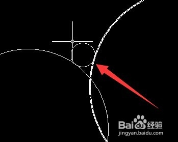 当你的十字光标移到圆的周围时,十字光标会自动捕捉到圆的边线,在两个圆上分别鼠标左键点击一下