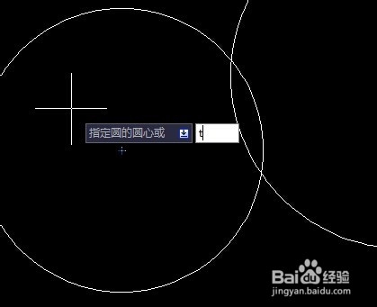 此时会提示指定圆心或坐标,此时键入另一个命令t(相切),之后点击回车