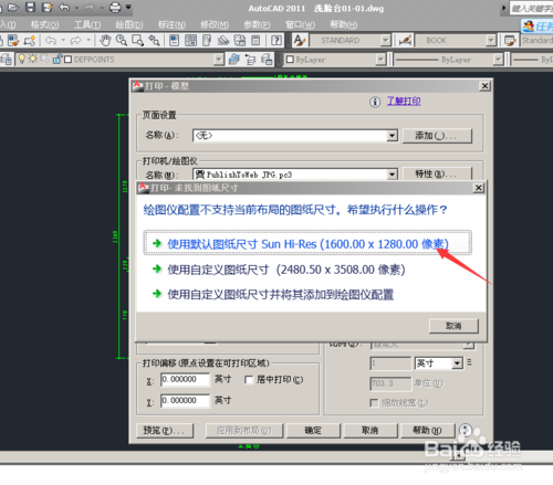 出现了打印-未找到图纸尺寸,在选择第一个。
