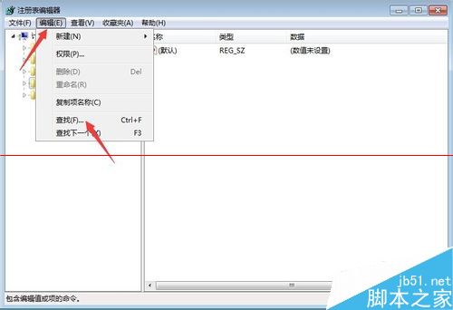 4、注册表编辑器被打开,搜索,当搜到的路径类似以下格式时:“HKEY_CURRENT_USER\Software\Autodesk\AutoCAD\R18.0\ACAD-8001:804\FileNavExtensions”(中间数字可能因人而异),我们通过“编辑”中的“查找”功能。