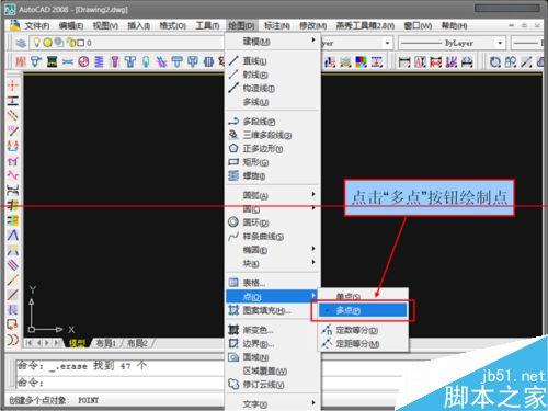 2、我们先绘制一些点,选择绘图-点-多点命令。
