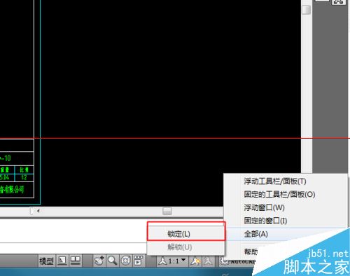 3、将鼠标图标移动至全部位置,直接生成菜单,选择“锁定”。这时你的界面就被锁定了(只有在界面没有锁定的情况下可选择锁定)