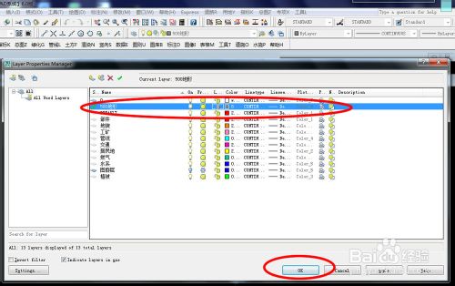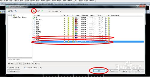 在CAD中打开原始地形,在图层控制菜单中关闭并冻结不需要的图层,如图所示图廓层。新建500地形图层,设置图层颜色为8号色,点击ok。