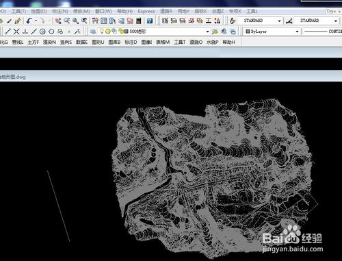 将原始地形的特性用过特性匹配命令(菜单栏修改命令里边的),匹配为所画多段线的属性,这样原始地形的图层变为了500地形图层,颜色也变为了和多段线相同的8号色。