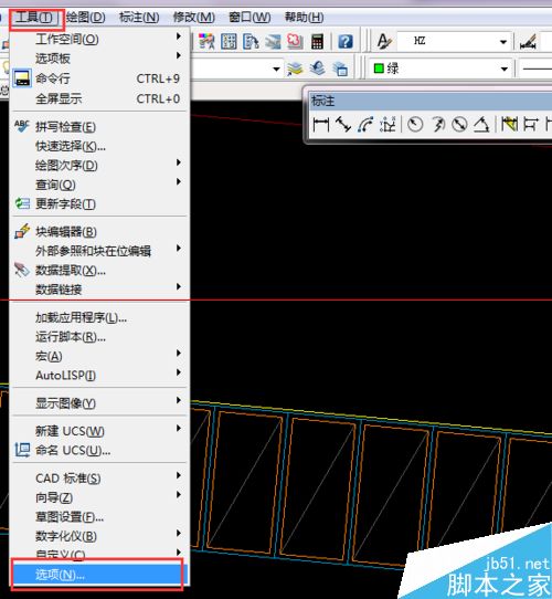 4、捕捉标记也可以调节,打开工具——选项,如图所示