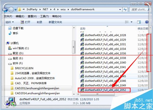 2、双击“dotNetFx40LP_Full_x86_x64_2052”进行安装(这里是64位的,所以是x64,如果你的事32位的,就是x32这个)。