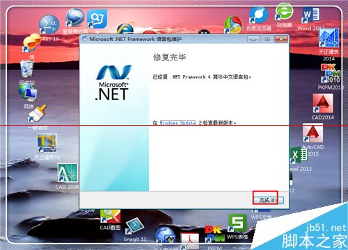 4、安装或者是修复完成,点击“完成”关掉窗口。这个处理做完,在进行方式三的处理。