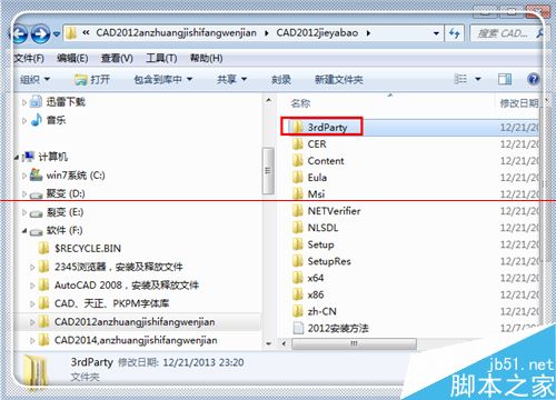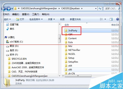 1、安装失败之后,进入CAD2012解压文件夹,找到“3rdParty”这个文件夹,点击打开。