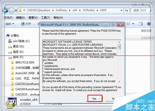 6、双击“vcredist_x64”应用程序进行安装。点击“yes”确定安装,直到安装完毕。