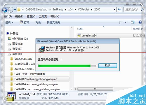7、这个程序较小,很快就会安装完毕。再次点击setup进行cad2012的安装工作,一般来说,进行了以上三个方面的处理,就能够成功安装了,如果失败,可以试试处理方式四