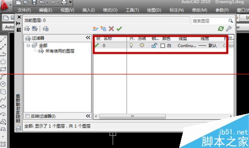1、打开cad,点击如图所示图标“图层特性管理器”