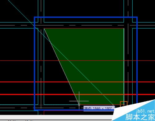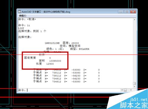 2、输完后按“Enter”确定键,同样如方法1,绘出我们要测的图形按“Enter”确定键,如图所示,小编为了大家好区分后面的步骤,修改了之后的颜色,绘好的图形会从原来的浅绿色,变成红色