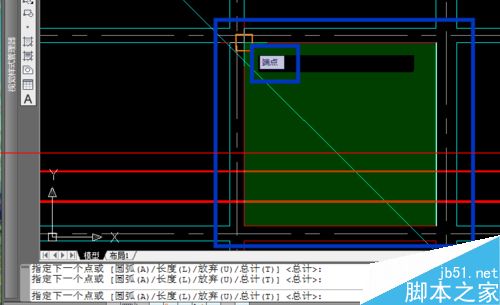 3、直到我们要测的图形从起点到终点合并,如图所示,“端点”和“起点”重合(即如图所示的绿色部分即是我们测的面积),然后按“Enter”确定键,绿色部分消失,同时我们就可以在下方的命令栏看到下方的面积和周长的数值,如图所示
