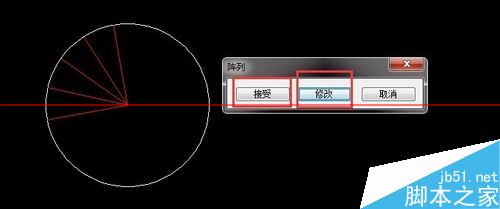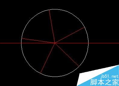 1、首先,小编画了一个圆形,想要阵列一种的一条红色线,如图所示,