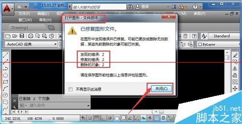 7、打开图形文件损坏,显示已经修复图形文件,以及修复的详细信息