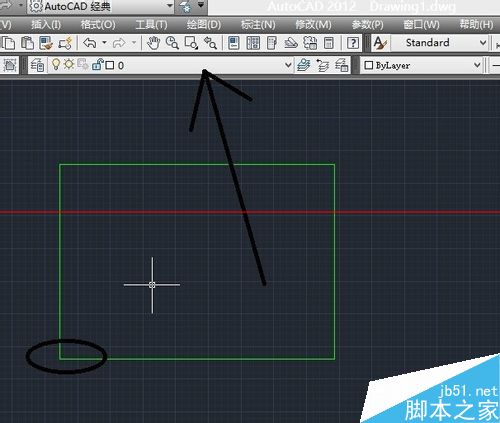 7、删除箭头所指的第一条线,再在右下角进行标题栏的绘制。