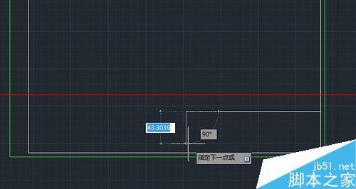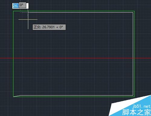 8、以内矩形右下角的点为起始点,输入直线命令,选定该点,鼠标上移,并输入56,空格键确定,左移输入180,空格键确定,下移输入56,空格键两次,完成图形的闭合。