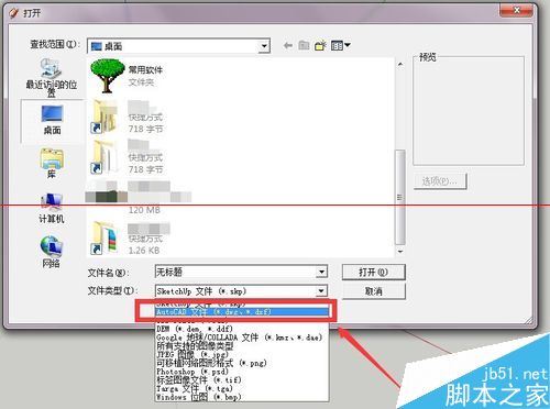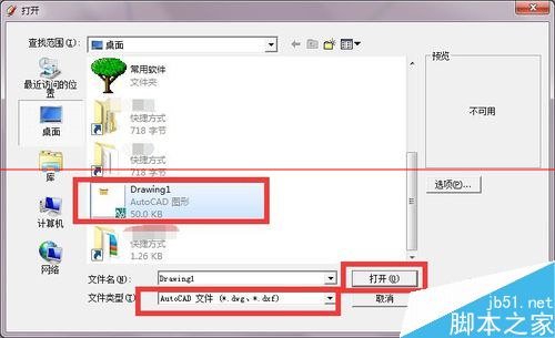 4、找到我们需要导入图形所在的位置,选择cad类型,如果类型选择的不对,我们会找不到我们要导入的图形的,如图所示
