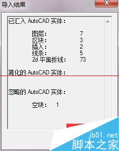 6、cad导入时,根据图形的大小,需要的时间不一样,所以耐心等待,当出现如下图形的时候,说明cad已经导入,点击关闭图框即可