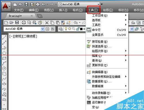 2、点击菜单栏里的“工具”选项