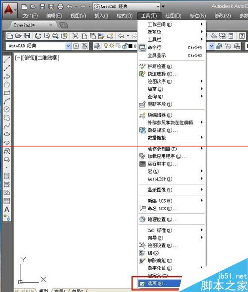 3、在工具的下拉菜单中有个“选项”按钮,我们点击它