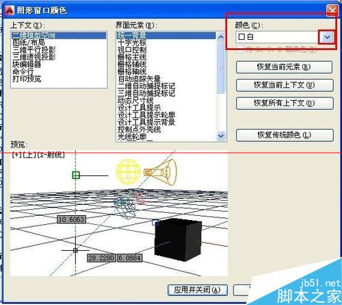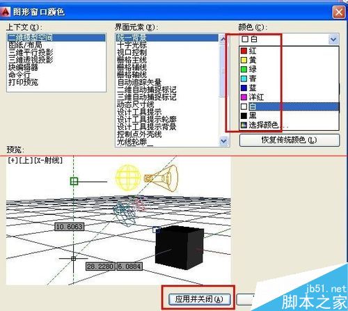 5、在图形窗口颜色对话框中,我们可以对颜色进行切换,点击颜色选项框