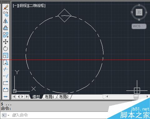 1、选择要阵列的图元,为了便于观察,我做了一个点划线的圆作为参考。而实际要环形阵列的对象为上象限点处的正方形。