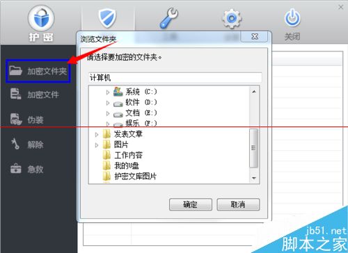 2、接着就打开并且点击软件左上角的加密文件夹。