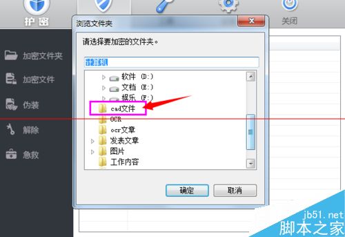 3、找到我们要加密的cad文件夹。