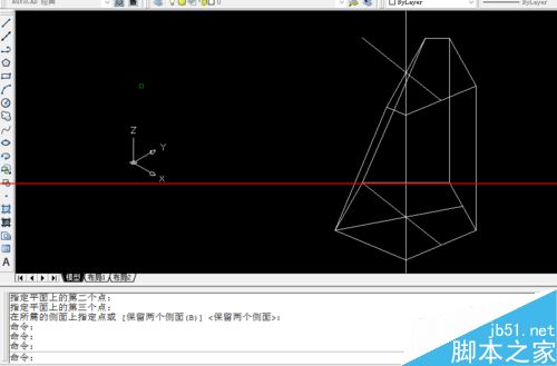 4、按enter键选定,输入3,进入3点剖切,即3点选择一个面,最后选定要保留的侧面,效果如图: