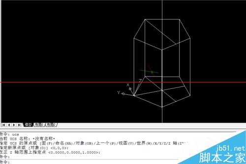 5、当然,你也选择不输入3,但你要新建一个世界,输入ucs,回车,za,回车,选定z轴矢量建立坐标系