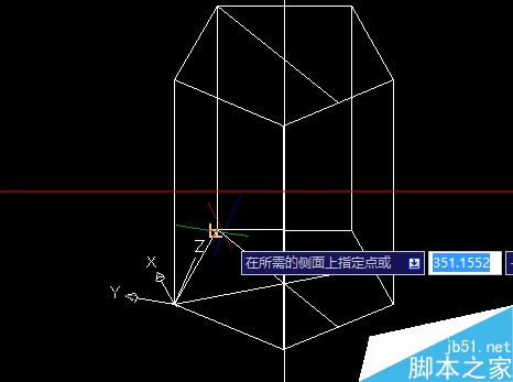 7、选定两点时最好选则与已知的边,如图所示:其中起点为坐标原点,图上显示的是第二个点,至于所需侧面的点就是要保留下来部分上面的任意一点都可以