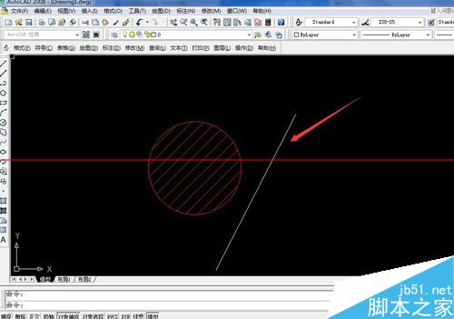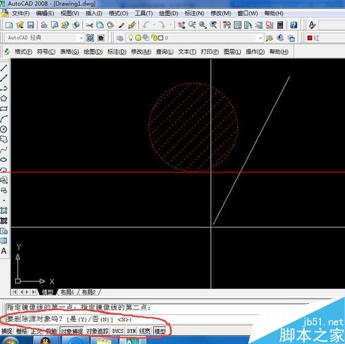 1、在cad中画出(找到)自己需要进行镜像操作的原始图形,这里我画了一个已经填充了的圆形。