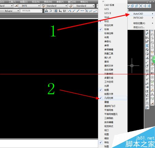 1、鼠标放置在空白处,右键,选择Autocad,选择几何约束