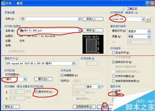 6、如何将dwg转为pdf格式,和打印的方式一样,就是把“打印机/绘图仪”中的名称改为“DWG TO PDF.PC3”就可以了,然后和打印一样选择图形,然后按确定。