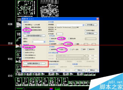 3.在第三步中,一定要选择图层和直接批量打印。