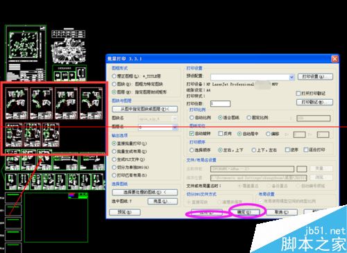 3.打印机确定好后页面会切换如下图状态,然后将图层(N),直接批量打印,适合居中,左右,上下选项栏勾选上,然后选择要处理的图纸。