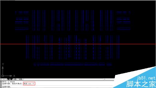 3、关键的一步,我们是巧用删除键来统计。点E——空格——框选所有需要统计的图元。看到没有,就在下边的文本窗口里。就是我们要统计的总数啦!