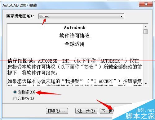 2、下载好之后,解压安装,cad2007序列号:111-11111111或任意,无需注册,按正常方式安装完成AutoCAD2007后自动激活。