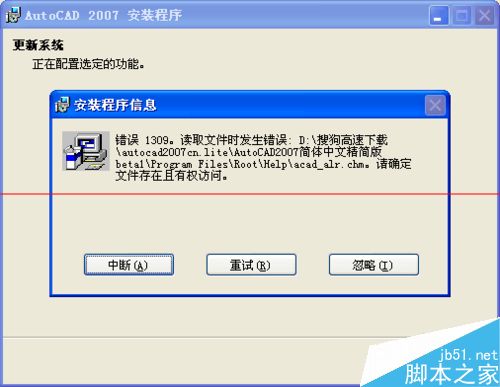今天下载了个autocad2007绿色版,虽然不用序列号,但是的安装老是报错,还出现几个对话框,怎么解决