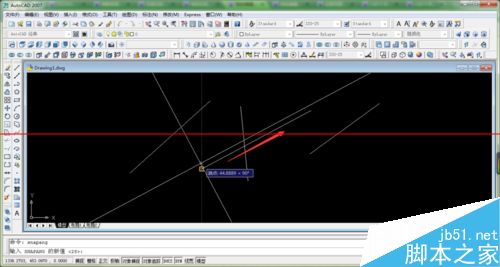 然后输入角度值,或者确定一条斜线的两个端点,使十字光标与该斜线平行