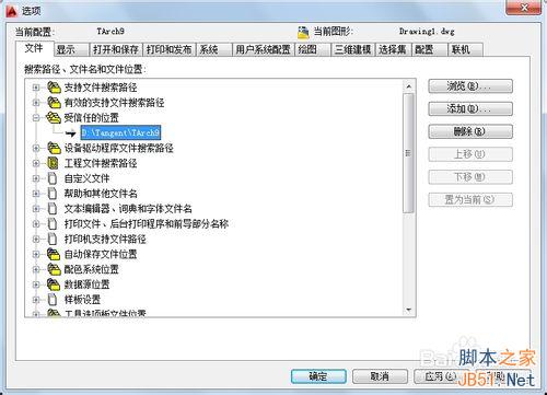 3、选择“添加”选项,然后选择添加上面的“浏览”,本实例以天正为例进行目录选择,选择天正目录。