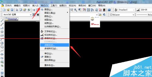 2、接着点击命令栏上的格式。然后点击点样式。就会弹出窗口。你会看到箭头所指的就是点的大小和点的样式的修改。点击你想要修改的大小和样式就可以了。