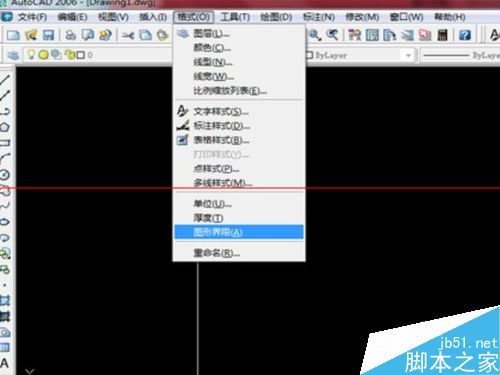 1、首先我们打开CAD,在打开的界面中我们先设置图形界限,选择“格式" 在里面点击“图形界限”,如图所示。