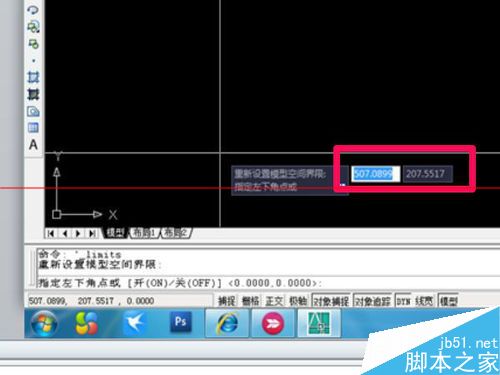 2、点击之后再图中位置设定界限值先输入,“0 ,0 ”,“100000,100000”。在按空格,如图所示。