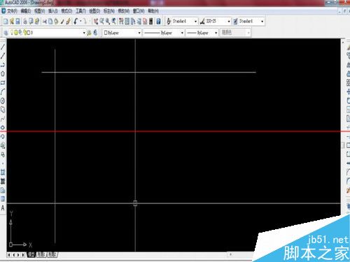 3、设置好后按A空格Z空格,然后按L,在界面中绘制2条交叉直线,如图所示。