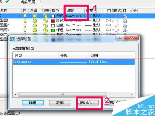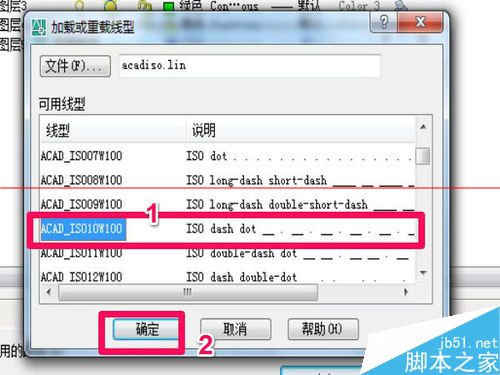 5、分层建立好后,就设置线型,如图上顺序点击即可,如图所示。