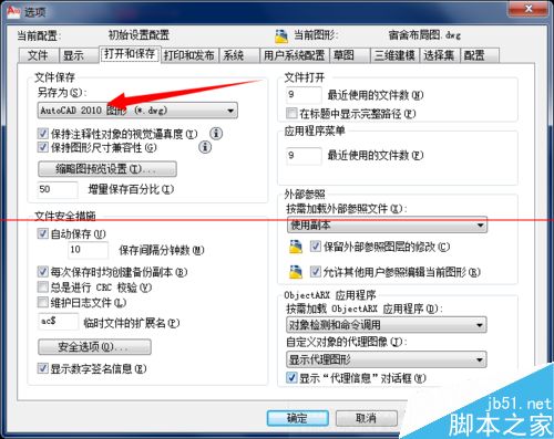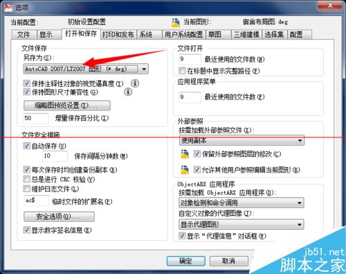 我们将画好的cad文件发给别人的时候,经常会遇到别人的cad版本过低无法打开的现象,如果是一次两次就算了,但如果是经常这样子,我们可以在cad里面设置一下,把你话的图纸改为每次保存时都是低版本的cad文件